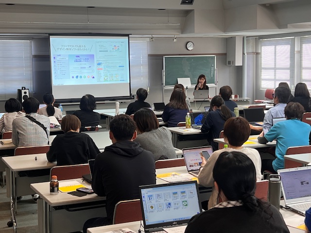 フォントや配色の選び方、視線誘導や余白を意識したレイアウト設計など、短時間でクオリティの高いデザインをつくるためのポイントを丁寧に解説。チラシ、SNS投稿、プレゼン資料など、日常業務ですぐに活かせるスキルをその場で習得していただきました。